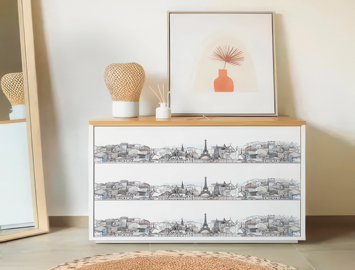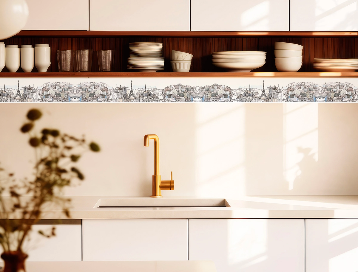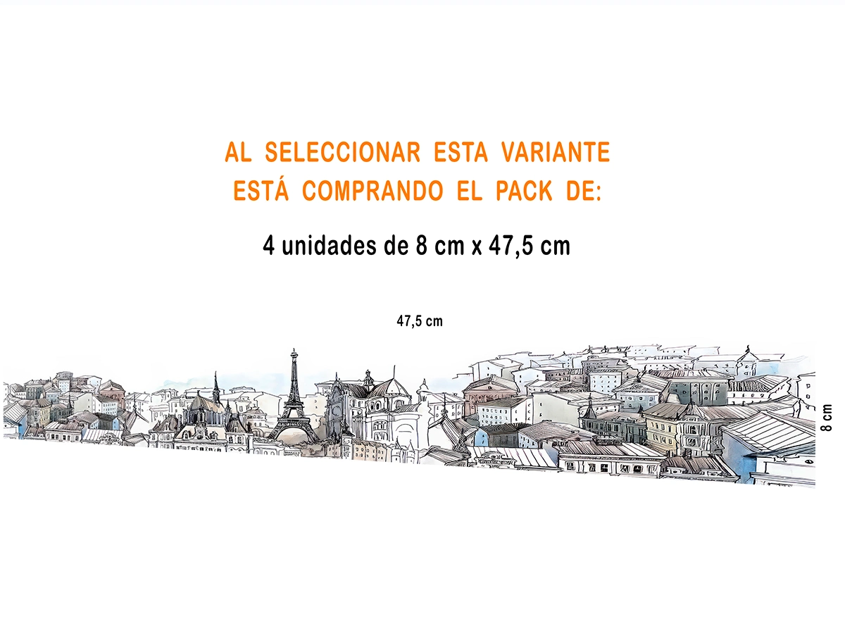 Pack de 4 cenefas autoadhesivas ideal para decorar tus paredes, cocinas, baños, muebles y cualquier lugar de superficies lisas donde quieras renovar su apariencia.