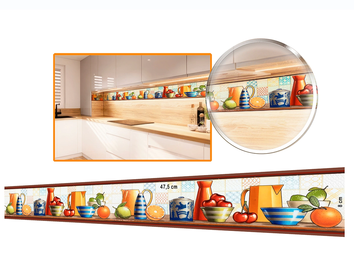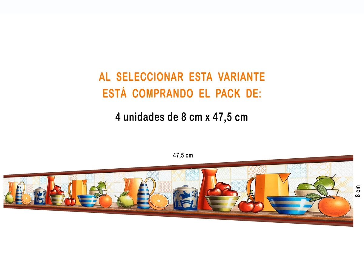 Pack de 4 cenefas autoadhesivas ideal para decorar tus paredes, cocinas, baños, muebles y cualquier lugar de superficies lisas donde quieras renovar su apariencia.